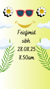 Cabhróidh do mhuinín agus meon dearfach le do pháiste bheith ar a s(h)uaimhneas agus muiníneach don chéad lá. Tosaíonn an lá scoile ag 9 ach tá fáilte roimh na páistí ó 8.50. Beidh na páistí ag dul abhaile ag 12 a chlog, bí in am ar maidin agus bí in am chun na páistí a bhailiú, cabhraíonn sin go mór leo. Rachaidh siad abhaile ag 1.40 ag tosú Déardaoin 12 Meán Fómhair.